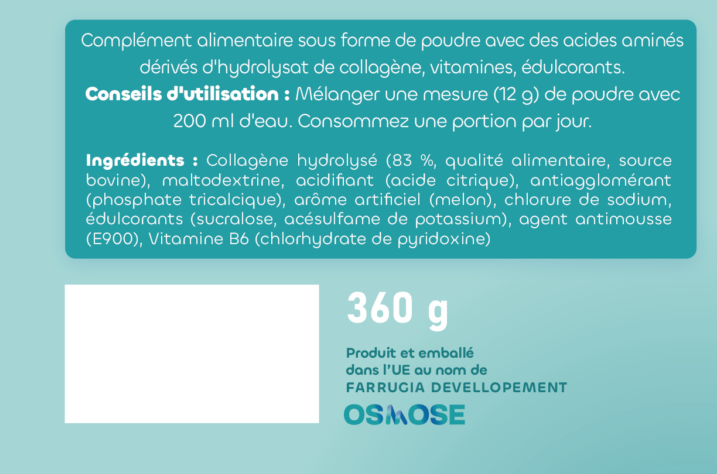 | Collagène hydrolysé | 83.3 g | 10 g |
