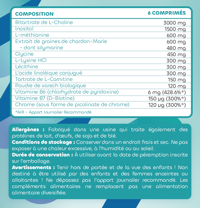 Bitartrate de L-choline, inositol, L-méthionine,